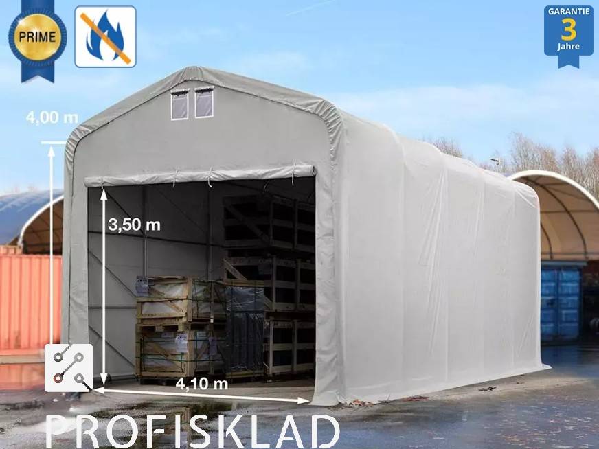 Táto stanová hala sa vyznačuje mimoriadne odolným konštrukčným profilom, ktorý je až 6-krát vystužený a zaručuje tak maximálnu stabilitu. Všetky nohy sú navyše pripevnené k zemi na extra veľkých stupačkách. Vysoko kvalitná, cca 720 g / m² ťažká PVC plachta s vnútornou mriežkou odolnou proti roztrhnutiu je pevne pripevnená ku konštrukcii špeciálnym napínacím systémom. Strecha a bočná plachta sú z jedného kusu a zaisťujú tak aj väčšiu stabilitu. Stanová plachta sa vyrovnáva a napína pomocou integrovaného napínacieho systému. Bez problémov je možné aj neskoršie prestavenie plachty. Štítové steny majú každý vchod, ktorý je možné upevniť v dvoch výškach pomocou troch robustných zipsov. Zabudované ventilačné klapky podporujú efektívnu cirkuláciu vzduchu a zabraňujú hromadeniu vlhkosti. Stanová hala je ideálna ako odkladací alebo pracovný priestor a ponúka tak lacnú alternatívu k pevným konštrukciám.