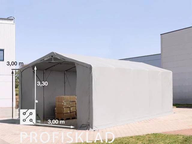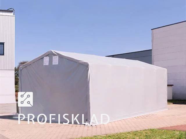 Ponúka solídnu základnú výbavu a celoročné využitie. Celogalvanizovaná oceľová konštrukcia s pevným podlahovým rámom a výstužnými oceľovými prvkami v streche odoláva vetru a počasiu. Pre väčšiu stabilitu sú všetky nohy dvakrát zoskrutkované a pripevnené k extra veľkým základovým doskám na zemi. Vysokokvalitná ťažká plachta z PVC s hmotnosťou cca 550 g/m² 20 s vnútornou mriežkou odolnou proti roztrhnutiu chráni tovar a tovar pred vetrom a počasím po celý rok. Strecha a bočné plachty sú z jedného kusu a zaisťujú väčšiu stabilitu. Plachta sa vyrovnáva a napína integrovaným napínacím systémom. Bez problémov je možné aj neskoršie prestavenie plachty. Stanová hala je ideálna ako skladový alebo pracovný priestor a ponúka tak lacnú alternatívu k pevným stavbám.